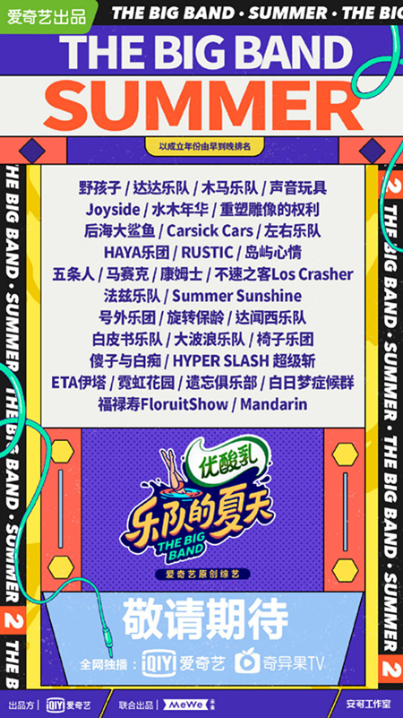 7月14日晚,《乐队的夏天2》官宣了节目的乐队阵容,包括由北京现代音乐研修学院毕业生组成的“左右乐队”在内的33支乐队,将在这一季的舞台上展开厮杀和碰撞,角逐中国HOT5乐队。