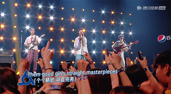 “水果星球”乐队是由吉他张旸、贝斯小智、主唱杨润泽三人组成,在公演中,乐队全新演绎歌曲《Uptown Funk》嗨翻全场,导师们也都随音乐而动,收获128分加油数,获得全场第一。