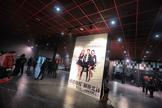 3月16日晚19时,北京现代音乐研修学院毕业生、时尚美女天团Cookie Girls“感恩母校 回报北音”2016专场演唱会在1500演播大厅火爆上演。三位成员用劲歌热舞嗨翻全场,现场的师生、观众也用最热烈的方式为Cookie Girls打气加油。