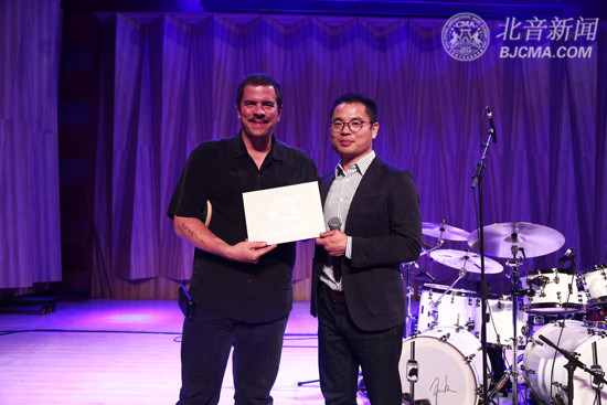 爵士乐学院院长宋军光为Russ Miller教授颁发客座教授聘书
