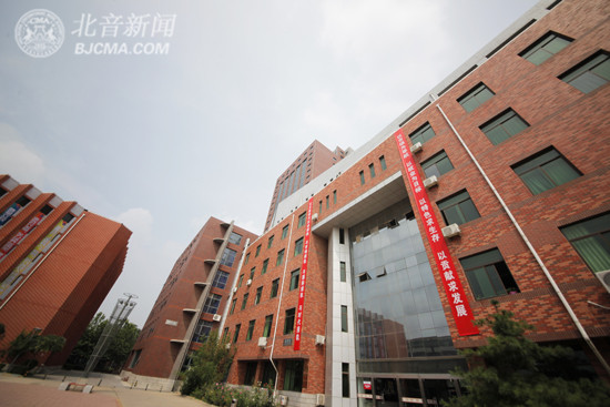 琴房楼彩色条幅句句道出每一位北音人对新生的热情