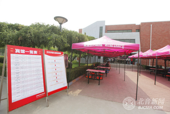 报到流程及周边宾馆住宿一览表摆放显眼位置,以便为学生家长提供便利