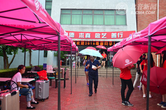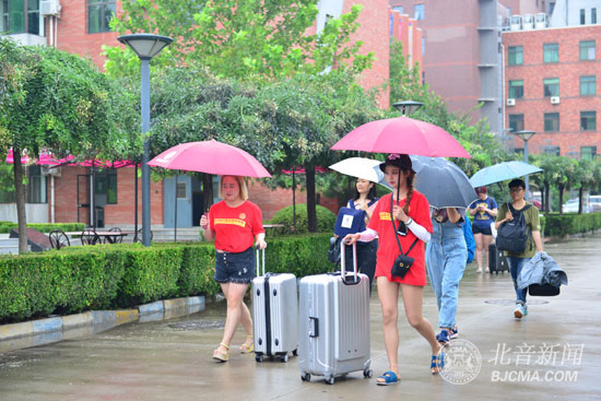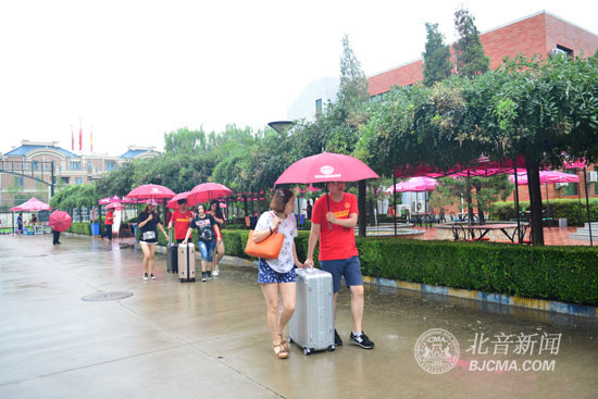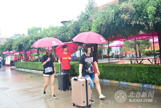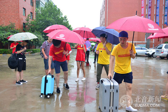 8月7日,北京现代音乐研修学院迎新第二日,一大早中雨便淅淅沥沥下着,但丝毫没有影响到同学们报道的热情,从早晨8点起,就不断有新生及家长前来报到,北音志愿者便在雨中为他们撑起一片无雨的天空,让新生及家长一踏入北音校园便感受家的温暖、家的温馨。
