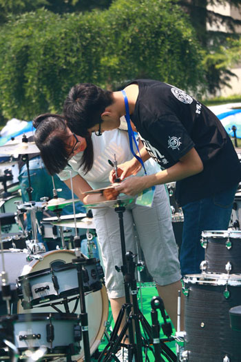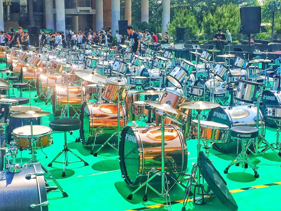 6月16日下午,北京现代音乐研修学院1050名摇滚音乐人齐聚北音姊妹院校——天津体育学院运动与文化艺术学院,与崔健激情唱响摇滚音乐,成功刷新“世界最大规模摇滚乐队”吉尼斯世界纪录。活动现场,全体乐手紧张调音、合奏排练,精心打磨细节、力求精致完美。