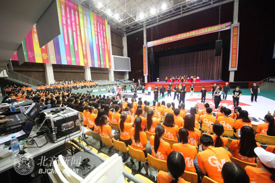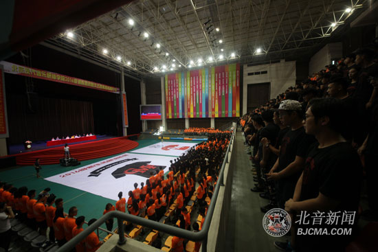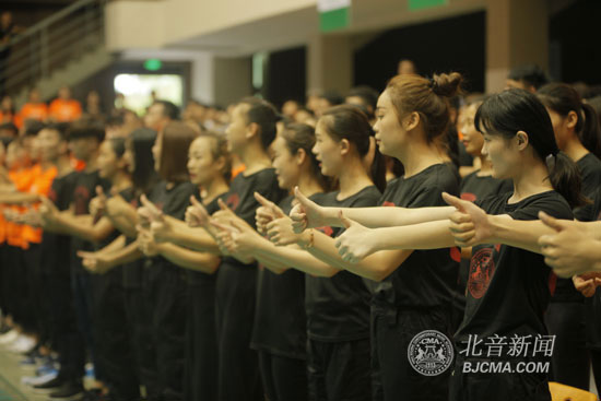 在《北音乐章》的节拍中闭营仪式正式开始,本次闭营仪式由千人齐念校训、爵士集体舞及拓展训练营风采展示几个环节组成,在30分钟的展示中这些新入学的大一新生们充分体现了这次拓展训练营“团结、协作、自信、青春、向上”的训练目的,同时也让我们看到了新一代北音人的精神风貌。