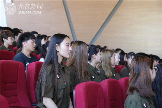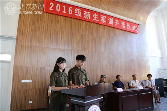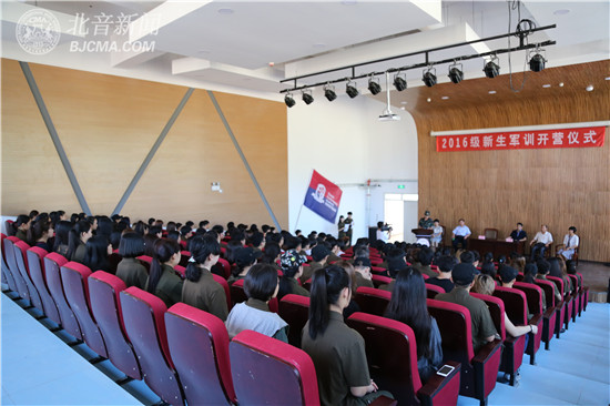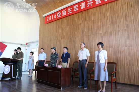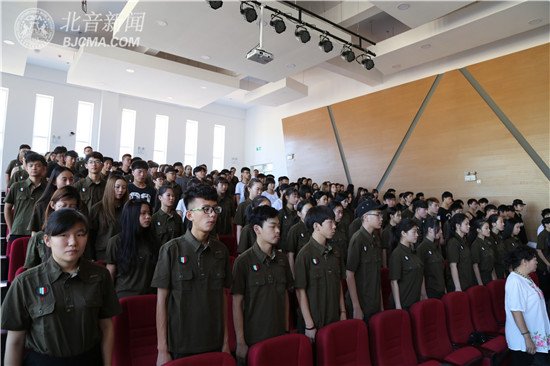 9月5日上午9:00,北京现代音乐研修学院附中(北京市现代音乐学校)与其“姊妹学校”天津市现代职业学校2016年新生联合军训开营仪式在北音附中盘山新校区首层报告大厅成功举行,参加开营仪式的主要领导有北音附中副校长张杏华、教导主任吕晓霞、天津市现代职业学校校长王军、副校长李锦平、汪劲松,及承训单位李少林教官等。