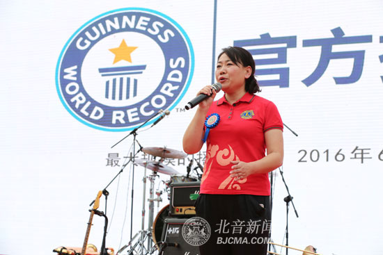 吉尼斯官方认证官Tina女士上台宣布挑战开始