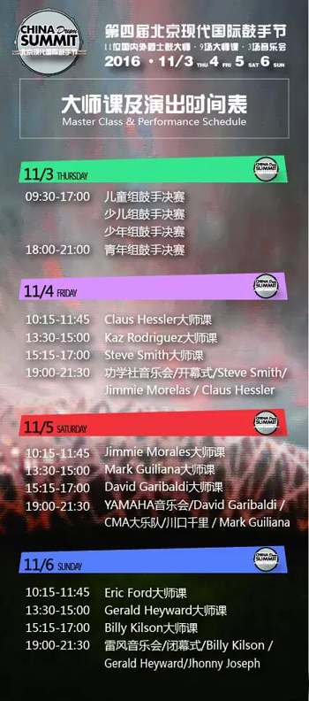 本届鼓手节,和前三届一样,打造了一系列丰富的活动,以满足全国鼓友的需求,共同推动爵士鼓教育的发展。