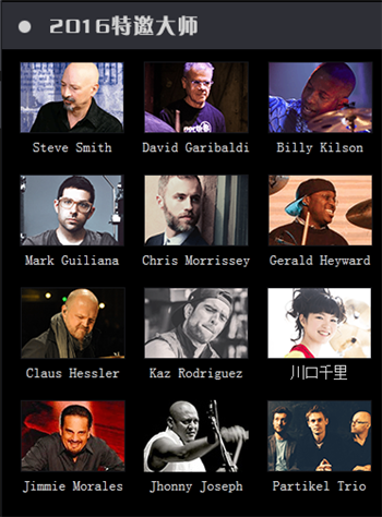 届时,最具激情与创造力的全能鼓大师Billy Kilson、世界排名第一全能鼓手Steve Smith、世界顶级律动大师David Garibaldi、新一代爵士鼓手领军人物Mark Guiliana和Chris Morrissey、Gospel教父级鼓手Gerald Heyward、Moeller技巧传承人——德国著名鼓手Claus Hessler、英国著名鼓手Kaz Rodriguez、日本著名鼓手川口千里、国际代言打击乐艺术家Jimmie Morales、毛里求斯爵士鼓大师Jhonny Joseph等11位国际顶级爵士鼓表演大师、爵士鼓教育专家将与来自全国各地的爵士鼓演奏者、爱好者、学习者共享这一中国现代音乐史上最具国际化和学术性的鼓坛盛宴。