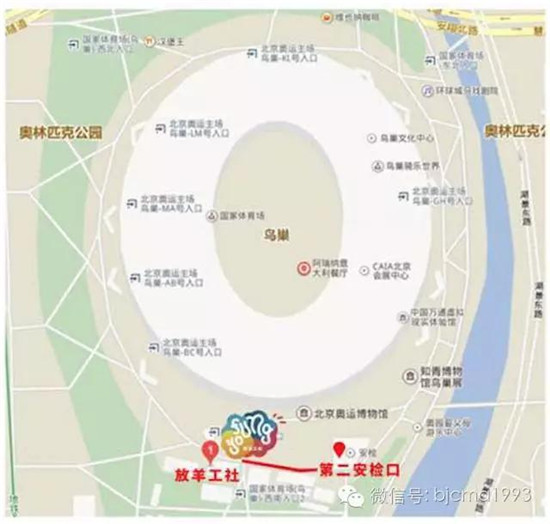 您要是自驾车,可将车开至鸟巢第二安检口,将车停至2号安检口停车场(停车费为6元/小时),之后步行至“放羊工社”。