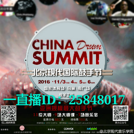 11月4日至11月6日,第四届北京现代国际鼓手节将通过乐视音乐及北京现代音乐研修学院官方微博,开启为期三天的大师讲座、音乐会和开幕式的直播,欢迎不在现场的小伙伴围观!
