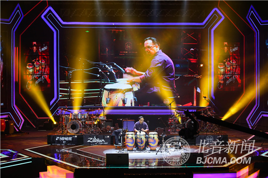 随后,国际打击乐艺术家Jimmie Morales登台献艺,高超的技术、精准的节奏让众国内鼓迷看到爵士鼓手的强大造诣,康佳鼓的现场演技更令观众不时爆发出热烈掌声。这位被誉为“全能超人”的打击乐艺术家用激情的演奏征服了在场所有观众。
