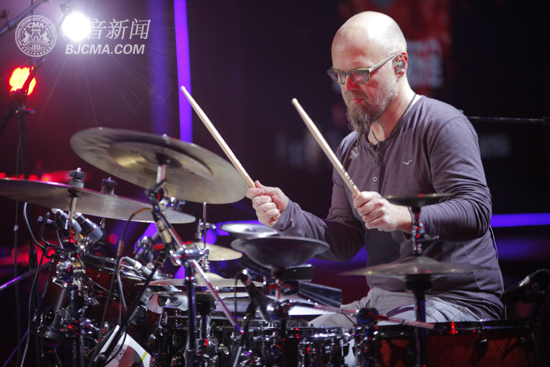 而后,世界排名第一全能鼓手大师Steve Smith压轴出场,其精湛的技术、独特的创意、惊人的速度节奏、无人能及的律动表演,引领着全场观众沉浸在他营造的音乐氛围中。