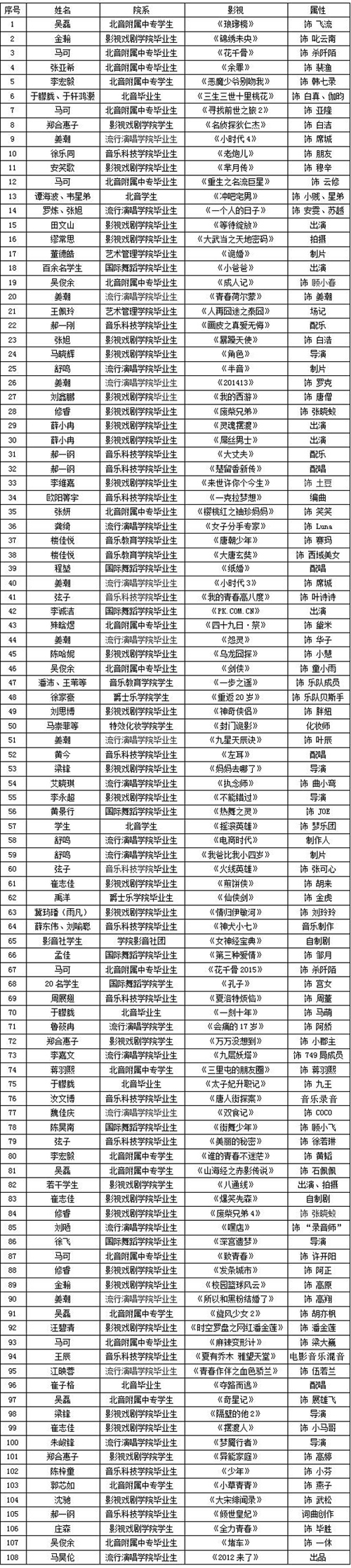 下面就让我们一起来“连连看”细数北音学子出演的百部影视盛宴!