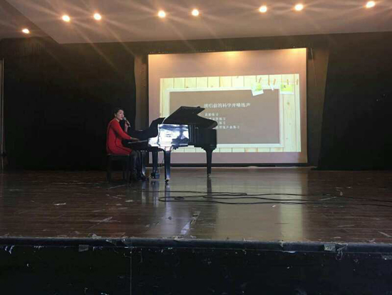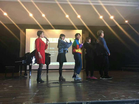 现场,陈莉萍老师从自己的经验出发,用生活活泼的教学形式从“演唱前的科学开嗓练声”、“节奏训练”、“演唱的强弱处理”、“演唱的情感和强弱处理”等方面进行扩展讲解,结合知识点进行演示律动的分割、变化和组合,对现场同学们的练习方式进行详细指导。