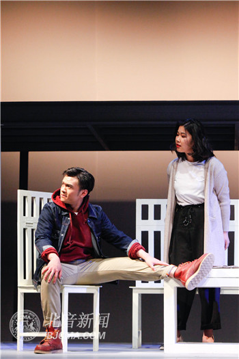 舞台上,同学们用饱满真挚的感情演绎着命运在生活中的机缘巧合,以及现实社会中的无奈和家庭生活中的争论焦点,而剧情中穿插的“这是宙斯,我现在不在家,请留言”等古希腊人物说词的展现又偶尔戳中观众的笑点。这部酝酿已久的社会伦理题材话剧,用淳朴生动的表演、地域风情的音乐,营造出灵活多变、转换自然的戏剧空间,打造了一场剧情紧凑,无暇旁思的冲击性表演,展现了“人是情感动物,情感会驱使人做一些不可思议的选择,导致人们最终走到一条荒诞的路上,造成难以收拾的局面”这一深刻主题。