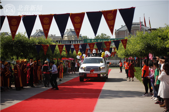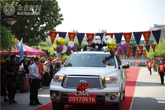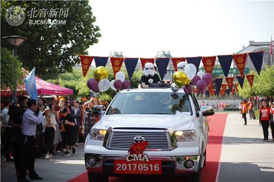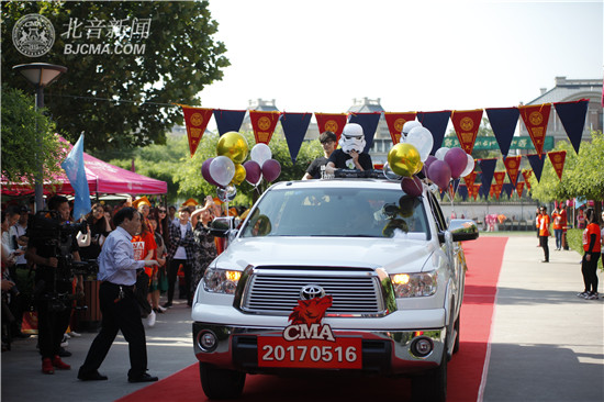 2017年5月16日上午,“那年,我们在北音相遇……”北京现代音乐学院2017届毕业典礼隆重举行,千余名毕业生穿上毕业礼服,在这庄严的时刻接受毕业成人礼。崔志佳、陈梓童、金瀚、陆敏雪、开克尔曼尼等明星学子也回到母校共赴盛会。 在学生入场仪式环节,继往年异型特效、Cosplay之后,北音又出奇招,开着汽车走红毯。