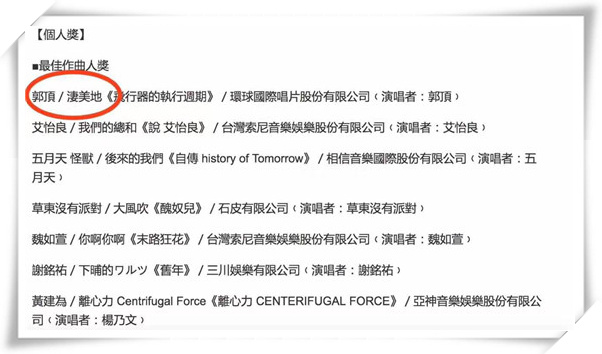 第28届金曲奖流行音乐类入围名单近日公布,北京现代音乐学院附中(北京市现代音乐学校)现代歌舞专业毕业生郭顶凭借第三张个人创作专辑《飞行器的执行周期》入围最佳国语男歌手、最佳国语专辑、最佳作词人、最佳作曲人、最佳音乐录影带五项大奖,郭顶也是与周杰伦、方大同、郭顶、卢广仲、林宥嘉、黄明志、大支争夺本届金曲歌王的热门人选。