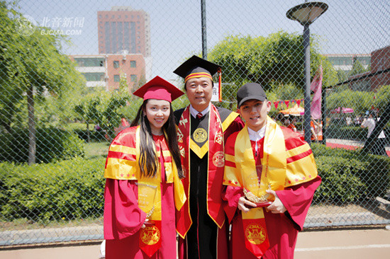 开克尔曼尼(右)、陆敏雪(左)与在北音2017毕业典礼上李罡院长合影