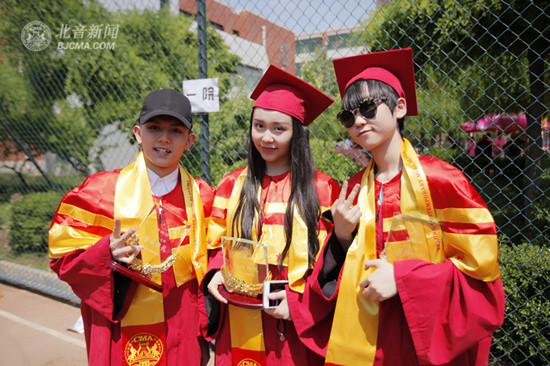 开克尔曼尼(左)、陆敏雪(中)与、黄佳欣(右)在北音2017毕业典礼上合影