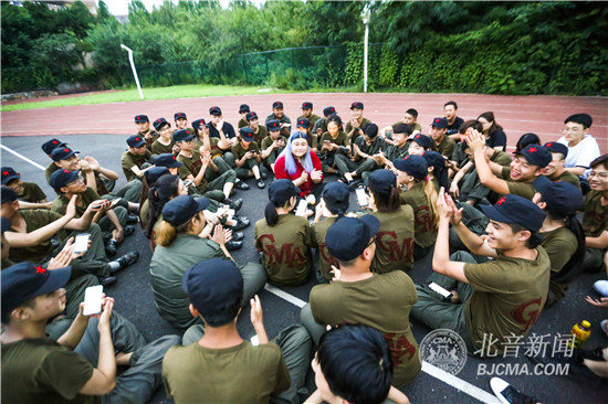 “携手走过春秋,并肩迎接冬夏,也有过泪,也有过痛,让希望开成鲜花。。。”夜色里北音盘山校区草地上,一个个身穿军装的飒爽少年,一位位不爱红妆爱武装的少女,在老师和教官的引领下,排列整齐地学唱着校歌《北音一家》,歌声在军训场上空飘荡,开启了新一代北音血脉对歌中北音文化和北音精神的接力和传承。