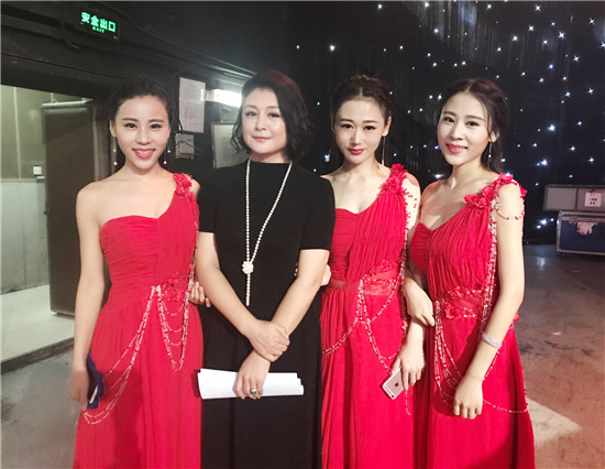 “星月三姐妹”《综艺盛典》演出后台与演员于月仙合影