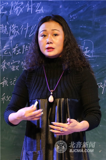 接下来,谢京辰老师让同学们不带动作和带着动作分别演唱同一首歌曲,并进行动作指导和分析,让同学们理论与实践相结合。