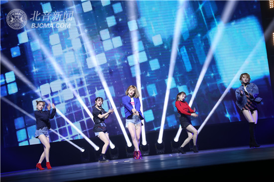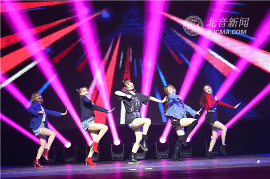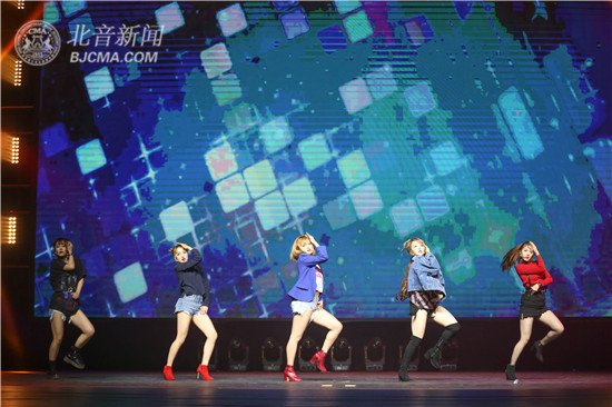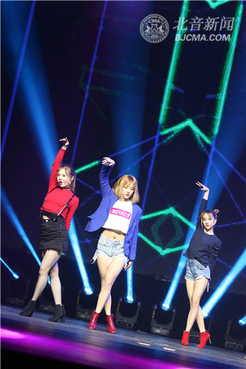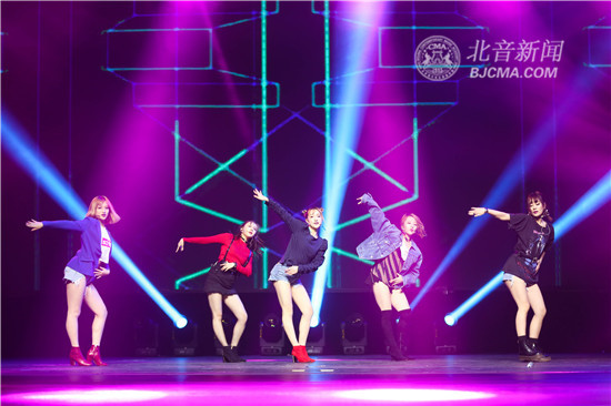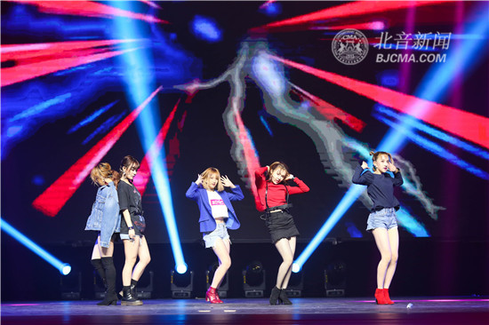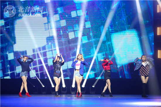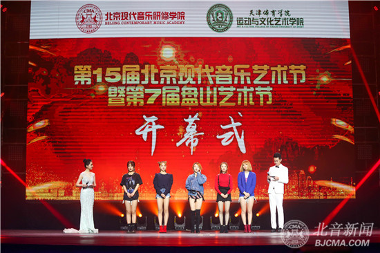 11月20日18:00,第十五届北京现代音乐艺术节暨第七届盘山艺术节开幕式在北京现代音乐研修学院盘山校区(天津体育学院运动与文化艺术学院)综合馆盛大开幕,精彩节目应接不暇,图为由北音学子组成的新人女子组合BLONGBOOM第一次现场演唱新歌《I NEED YUH》并接受主持人采访。