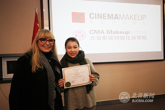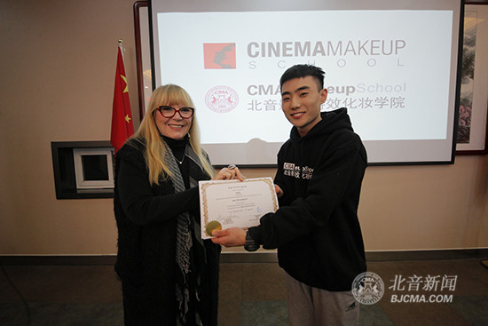 Ve Neill为北音影视特效化妆学院2016全科大师班毕业生代表颁发结业证书