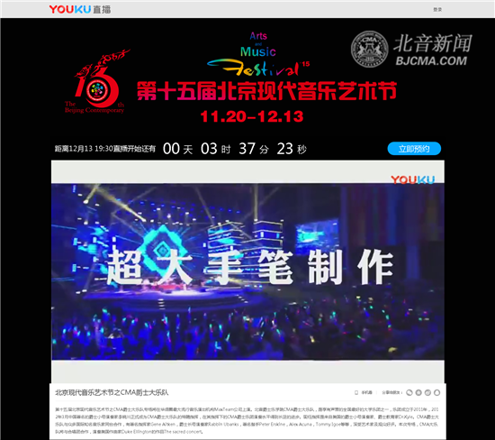 今晚19:30,第十五届北京现代音乐艺术节北京现代音乐研修学院爵士乐学院CMA爵士大乐队专场演出,将在华语圈最大流行音乐演出机构MaxTeam公司震撼上演。优酷视频、@北京现代音乐研修学院 官方微博(一直播ID:25848017)将全程直播。