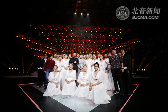 台前的精彩,离不开台下师生的心血和汗水。自接到邀请活动通知,合唱团32名同学便进入到紧张的排练中。同学们纷纷表示:虽然忙碌却觉得非常充实,也非常感谢学校的领导和老师能给他们提供这么多机会。而节目录制结束后,同学们在舞台上向在场导演和工作人员集体鞠躬致谢,表现出了北音学子极高的修养,赢得了现场热烈的掌声。