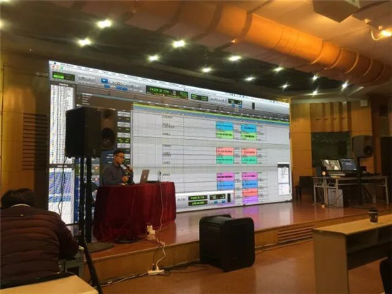 讲座中,王磊老师分享了自己和大咖们合作时的趣事和经验总结以及遇到紧急情况时的处理意见。对于担任今年12月火爆全国的明星跨界真人秀《跨界歌王第二季》的全期混音师,王磊老师详细介绍了他在混音前,对所有轨道的整理和编组,以及前期部分乐器轨道做出的频率避让和补偿,并选取了其中一些比较有代表性的实录轨道,进行了详谈。