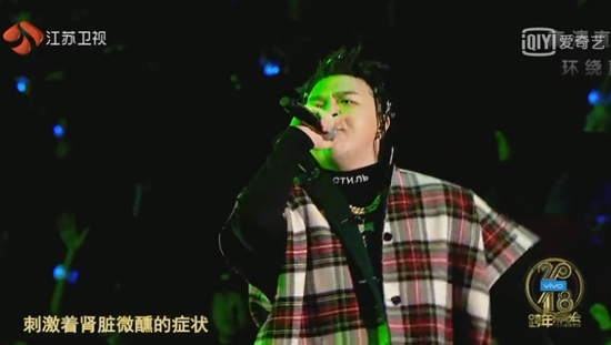 北京现代音乐研修学院毕业生艾福杰尼助阵江苏卫视“2018跨年演唱会”说唱演绎《都市物语》