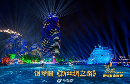 2月15日除夕夜,2018央视春节联欢晚会在万众瞩目中隆重登场。在海南三亚分会场,钢琴家吴牧野与克罗地亚著名钢琴家马克西姆激情演绎了钢琴曲《新丝绸之路》,该歌曲由北京现代音乐研修学院音乐科技学院教师王伟洲操刀编曲。《新丝绸之路》整曲融合了中国、俄罗斯、印度、中欧地区的音乐元素,加上炫酷舞台和唯美表演的衬托,气势恢宏磅礴。