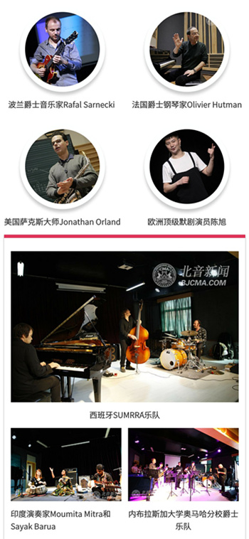 2017年,好莱坞影视化妆教学、美国福赛大学、韩国国立顺天大学等众多国际知名艺术院校来北音交流访问、寻求合作,曼哈顿音乐学院教授Ted Rosenthal、内布拉斯加大学奥马哈分校爵士乐队、美国北科罗拉多州立大学“全球之声”萨克斯四重奏乐队、法国爵士钢琴家Olivier Hutman、 美国萨克斯大师Jonathan Orland、欧洲顶级默剧演员陈旭、波兰爵士音乐家Rafal Sarnecki、波兰著名爵士演唱家Bogna Kicinska等几十位国外艺术家来到北音演出交流、讲授大师课。