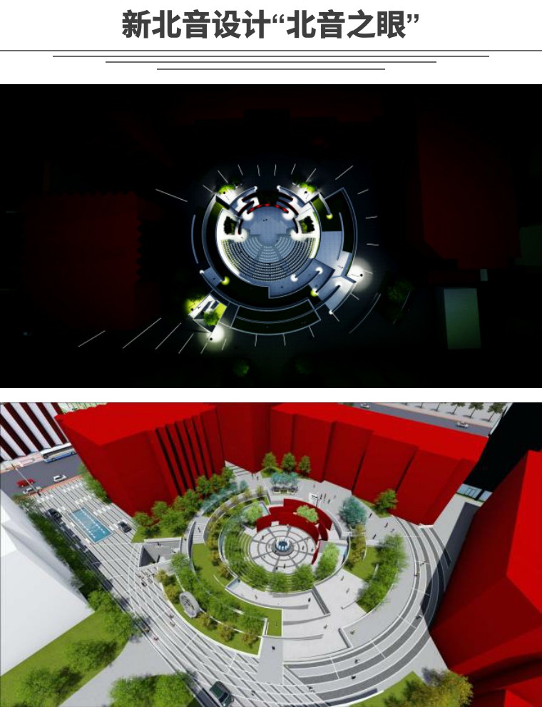 2017年,北音东院花坛新蓝图“北音之眼”首次曝光:下沉式的设计,集休闲和演出于一体,拥有两千多人的观看席位……在不久的将来,北音院内还会增添新的528剧场、新的报告厅……发展中的北音房子会如雨后春笋,耸立在你我熟悉的云景南大街68号院内。