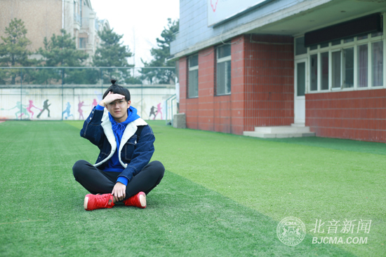 记者见到他时,他身着宽松的帽衫加牛仔棉服,黑色运动裤加红色运动鞋,圆圆的眼镜加上丸子头,一脸可爱的笑,这就是出生在湘潭一个普通家庭、从小就喜欢音乐的中国内地音乐唱作人钟易轩。