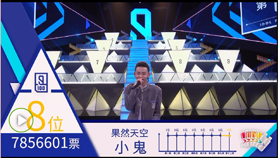 4月6日晚,《偶像练习生》出道直播舞台圆满落幕,Nine Percent九人团名单确定。北京现代音乐研修学院学生小鬼获得现场投票7856601票,排名第八确定出道。