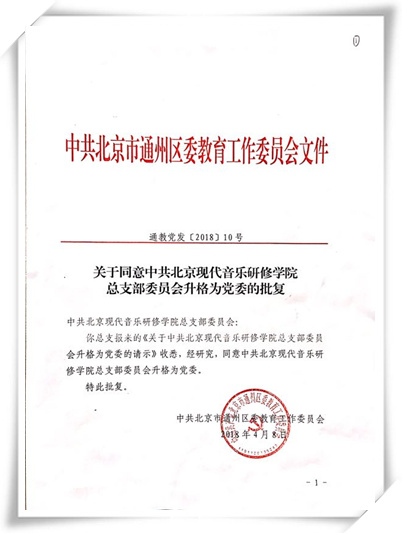 近日,经中共北京市通州区委教育工作委员会批复,北京现代音乐研修学院党总支正式升格为北京现代音乐研修学院党委。