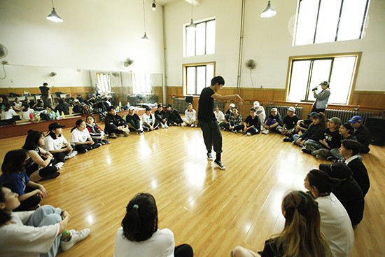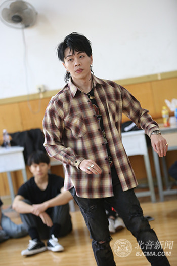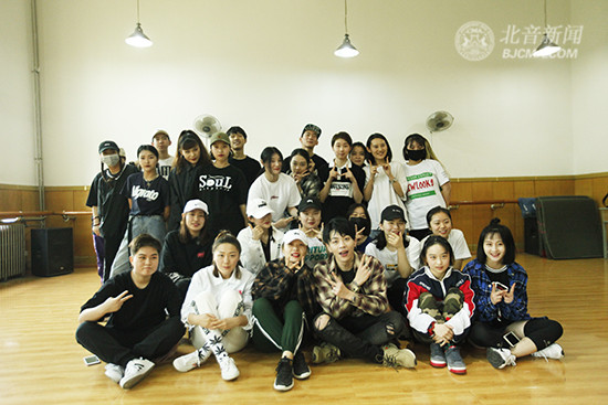 在北音三层琴房楼,同学们围成一个圈,席地而坐,杨文昊跟着音乐,动力十足地跳着舞,同学们一一上前,跟师哥进行battle交流。气喘吁吁的杨文昊边跳边不忘适时地给出自己的建议:“师弟师妹们如果想学好街舞,应该尽情放开自我,活泼一些,能一听到音乐,马上就能high起来,舞动起来!”
