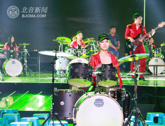 下午16时,由近五十名女鼓手、贝斯手、吉他手组成的爵士大乐团从学院出发,赶赴北京市农业大学体育馆参加晚会彩排。所有工作紧张有序,保证了第一次彩排的顺利进行。