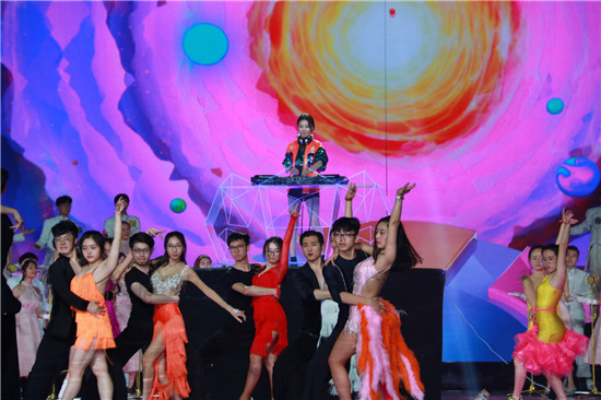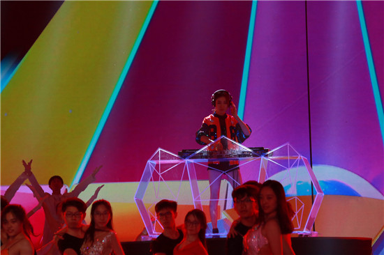 在中央电视台2018年《筑梦新时代》——“五月的鲜花”全国大中学生文艺会演彩排现场,在舞台中央的制高点,在炫目灯光的笼罩下,站在科技时尚的DJ操作台前活力四射、随着音乐尽情挥洒演绎的女孩,成为了全场最瞩目的焦点。她就是北京现代音乐研修学院音乐技术系DJ&EDM创作专业2015级学生李佳毅。