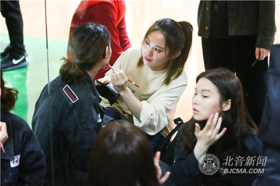 “每天早晨六七点出发,凌晨回到学校,等睡下已是四点钟,六点又得出发,只能在来回的路上补觉”,这样的状态已经成为这几天彩排中的家常便饭了。虽然很累,很辛苦,但同学们依然在坚持,依然保持着饱满的热情。为了能以最好的形象和精神面貌出现在舞台上,同学们时刻注意着保持自己的妆容;在休息间隙,同学们也没有停止练习,讨论着导演对节目动作的要求和表情状态,一遍又一遍地分析问题。在一次次的彩排中,同学们不断地激活在学校积累沉淀的专业技能和素养,舞台表现力和感染力不断提高,同时也在这个过程中更加理解了包容和并肩作战的含义。也正是如此,同学们在短时间内高质量地完成了节目。