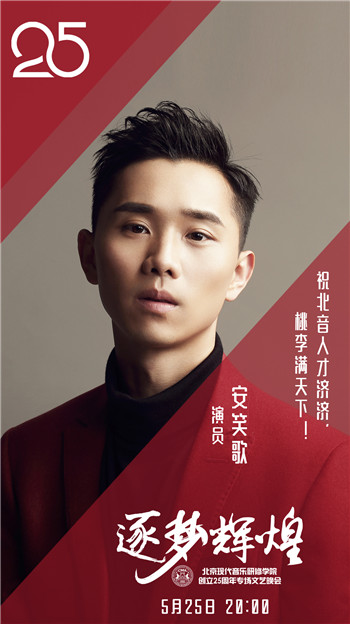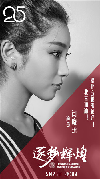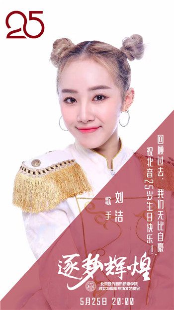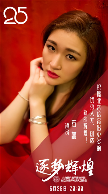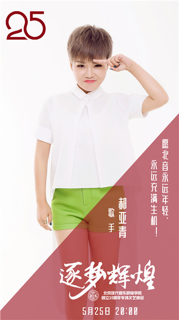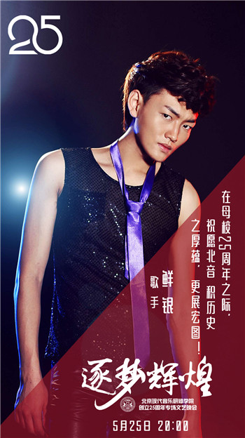5月25日晚8点,“逐梦辉煌”北京现代音乐研修学院创立25周年专场文艺晚会将在北音校园浓情上演,消息一经公布,《中国好歌曲》第二季全国总亚军苏运莹、《中国好声音》第四季全国总亚军陈梓童、《星光大道》2014年度五强郝亚青,新生代青年演员石蕊、闫晓琼、安笑歌、于轩鸿浩等大批北音学子率先向母校发来了生日祝福。