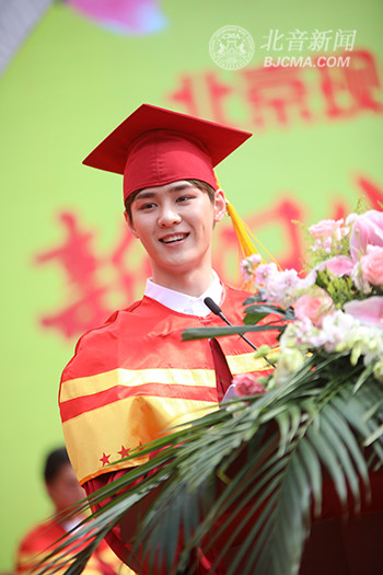 韩国男子组合NCT主唱钱锟作为优秀校友代表发言,感恩母校,感恩学院领导及自己的授业老师,同时也对学院和毕业生送上了祝福:“祝福所有的同学们能继续带着自己的梦想勇往前行,每个人都能做自己想做的事。祝福所有的老师开心,健康,桃李满天下。北音越办越好!”
