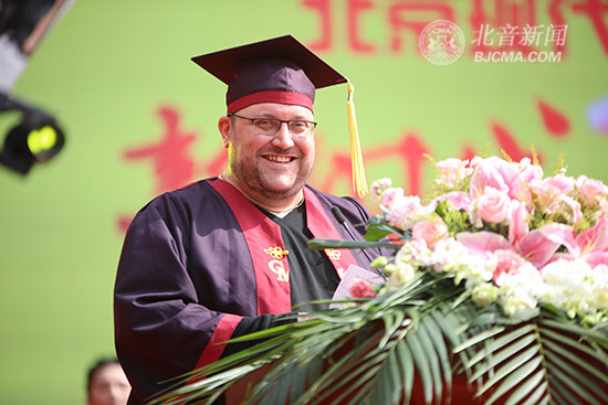 外籍教师Eric作为教师代表,也向毕业生们做了个愉快的约定,他说:“I love my students,hope you can remember me, France not only have Eiffel Tower, The triumphal arch, goose liver , truffle ,but also have Saint Sae, Camille, Debussy and me, I am Eric, hope you all happy graduation!(我爱的孩子们,愿大家记得我这个朋友,法国不仅仅有艾菲尔铁塔、凯旋门、鹅肝、松露、还有圣·桑、德彪西和我。我是Eric,祝大家毕业快乐!)”