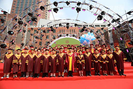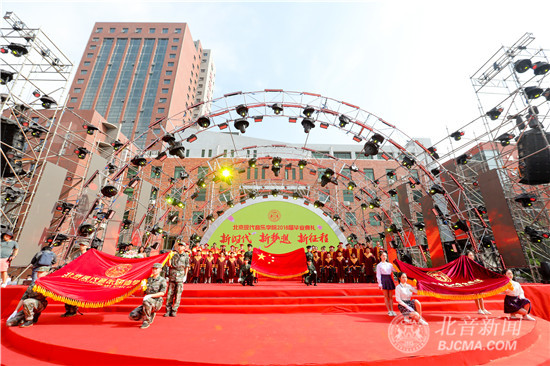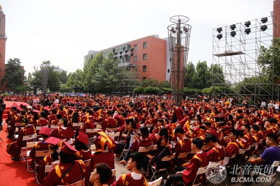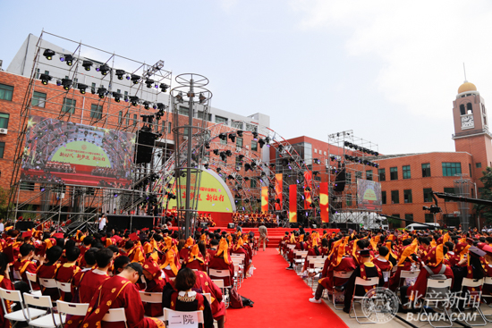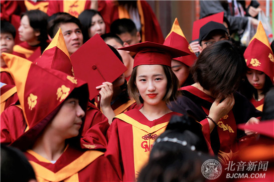 最后,典礼在金穗奖获得者闫泽欢原创歌曲《晚安北音》的歌声中落下帷幕,2018届全体毕业生与院领导、老师在操场合影留念,把最美的笑容定格在这一刻,抒写北音最靓丽的风景,开启人生新的征程。