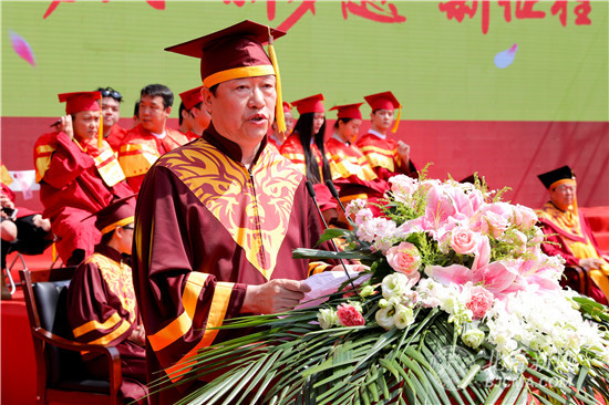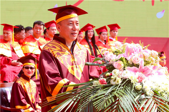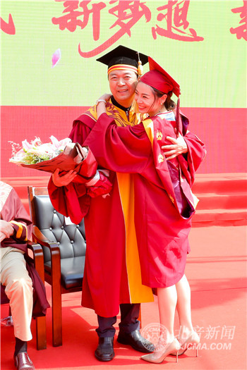接下来,李罡院长致辞,为这些即将离开的毕业生们送上寄语。他说:“未来的路很长,愿你们的足迹遍布四方;为家国未来贡献出自己的无限青春智慧。走向社会,同学们遇到的最多的问题一定是选择。我无法告诉你们哪条路是捷径,但只要坚定信念,不忘初心,就一定会有阳光和鲜花;抢抓机遇、踏平坎坷,是我们一代又一代北音人的奋斗足迹。希望你们能坚守初心、追逐梦想。祝愿你们能带着自己最初的心,走最远的路,做最真的自己,过最棒的人生。不管你们未来过得怎样,母校始终会张开双臂,等待你们回来。”“罡爸”深情的嘱咐和嘱咐,牵动了现场学子内心最深处的心弦,引起了现场的欢呼和沸腾。