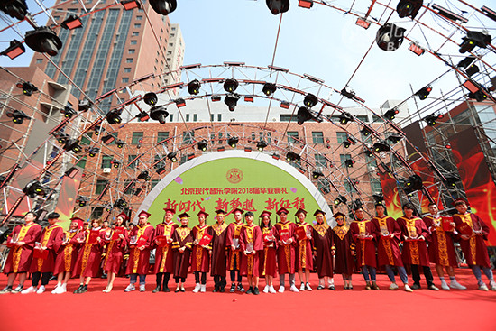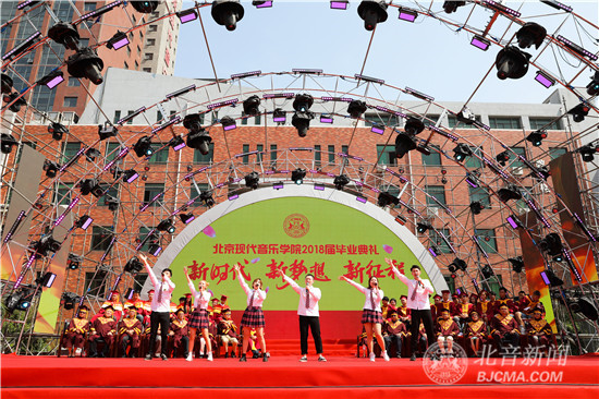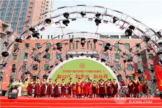5月25日,北京现代音乐研修学院及其附属中专“新时代 新梦想 新征程”2018届毕业典礼隆重举行,千余名毕业生们身着毕业礼服,怀着感恩而不舍的心情齐聚一堂,为自己大学四年的学习生活画上圆满的句点。韩国男子演唱组合NCT成员钱锟、2017“快乐男声”全国四强黄榕生、《中国新歌声》第一季周杰伦组人气学员吴江、著名电视节目主持人任一宁、新生代青年演员汪诺乔等一大批在专业领域取得突出成绩的优秀北音学子回到母校接受了表彰。