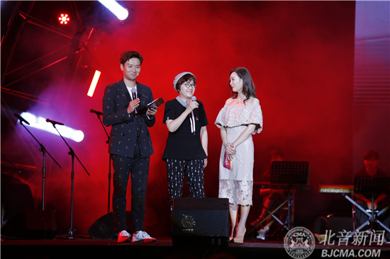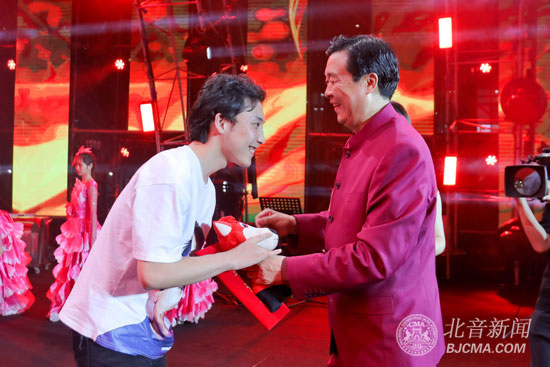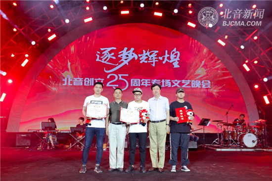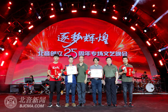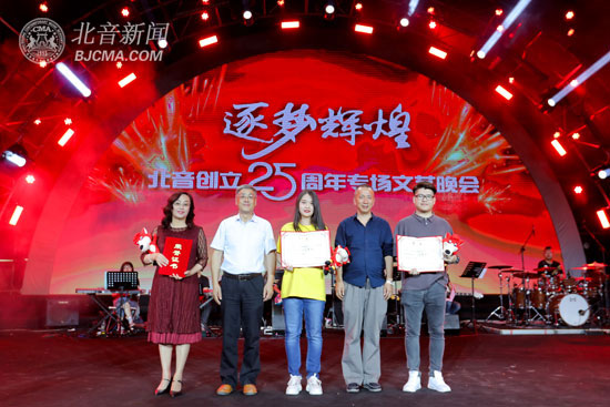 在晚会临近尾声时,主持人公布了 “我爱北音”校园歌曲征集活动的获奖名单,李罡院长等院领导为获奖人员颁发了获奖证书。